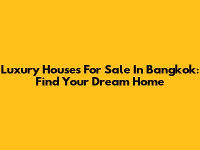 Luxury Houses For Sale In Bangkok: Find Your Dream Home