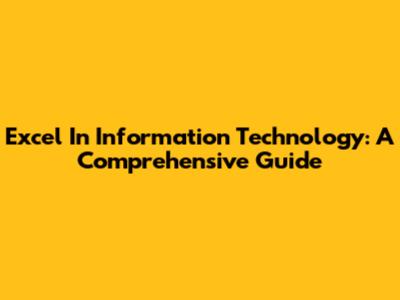Excel In Information Technology: A Comprehensive Guide