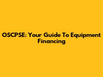 OSCPSE: Your Guide To Equipment Financing